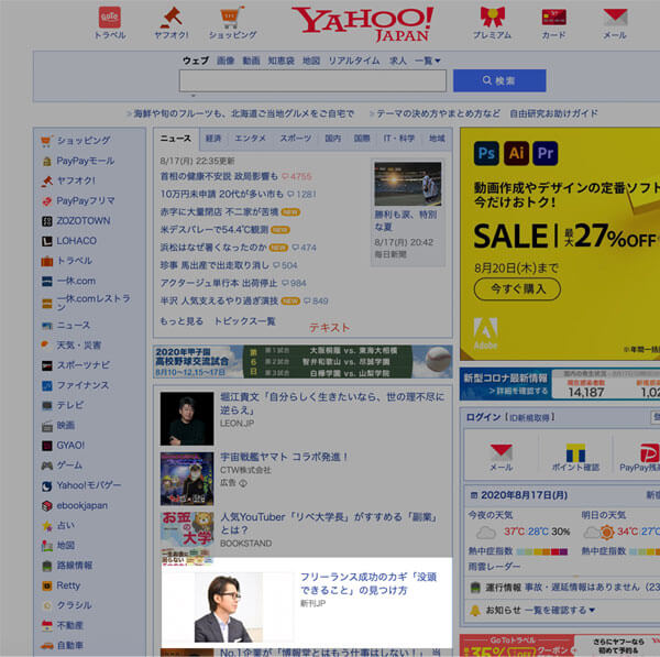 【WEB】YAHOO!JAPAN トップページに掲載